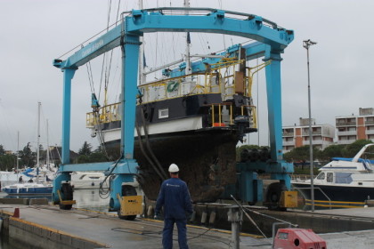 Seit 2 Tagen liegen wir jetzt an Land. Die Muscheln sind abgekärchert worden. Immerhin 5 ganze Schubkarren voll. Aber darum hat sich die Werft gekümmert.gestern haben wir den Rumpf ordentlich mit antifouling gestrichen.
