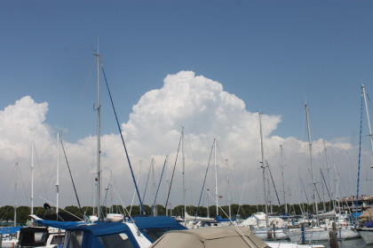 Wetter hat uns ein klein wenig verschaukelt. Just zum Zeitpunkt des Auslaufens gab es ein kleines, heftiges Gewitter. Also sagten wir uns, das tun wir uns nicht an, wir fahren Samstag raus.