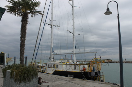 Wegen der vielen bösen Wellen hat Dagmar den ganzen Tag in der Koje mit dem Eimer im Arm gelegen. Gerhard hielt sich standhaft am Steuerrad fest, die Nase lief und der Wind pfiff wie immer aus der flaschen Richtung. Also wieder die "Schwarze Genua" gesetzt und kräftig gegen angekämpft. Nach 7 Stunden haben wir dann endlich die Einfahrt in den großen Industriehafen Chioggia passiert und lange auf einen Marinero warten müssen. Dabei "nur" die rote Seitenlaterne zerstört. Wir haben beschlossen, jeden ersten Schluck eines kühlen Getränkes der See zu spenden. Nun liegen wir hier und warten mal wieder besseres und sicheres Wetter ab. Nette Eindrücke von Chioggia haben wir auch schon gesammelt. Wir nennen es Klein Venedig.